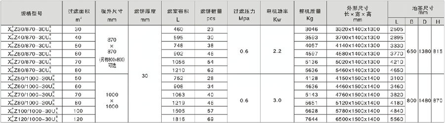 1250/1500/2000型液壓自動拉板壓濾機技術參數